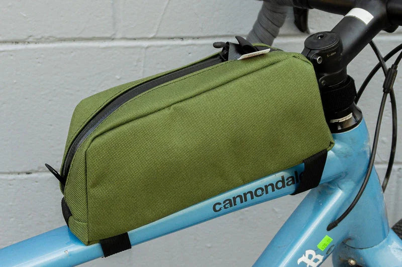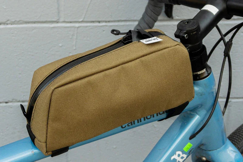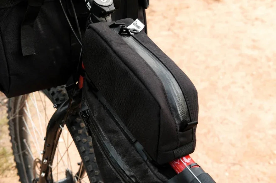 It's simple yet effective. Comprised of the main pocket with an inner divider - perfect for your phone or other sensitive items. This bag was made to haul. Store those necessities with ease. Dump your pockets and start to organize your cockpit with this nifty, oversized top-tube bag.