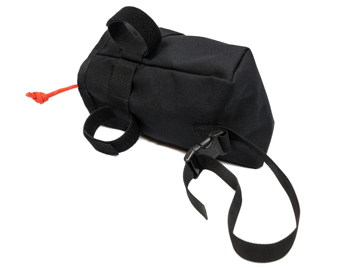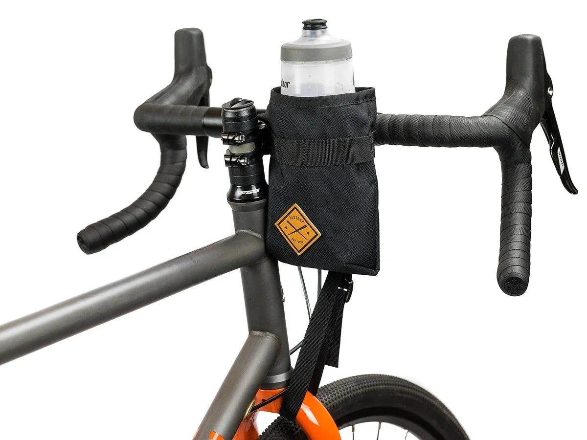 The Restrap stem bag gives you even more storage. Ideally designed for food, or even a water bottle, our stem bag will keep your supplies safe and dry. Easy draw string closure means you can access its contents on the go, whilst its adjustable Velcro and fork support fits any bike.