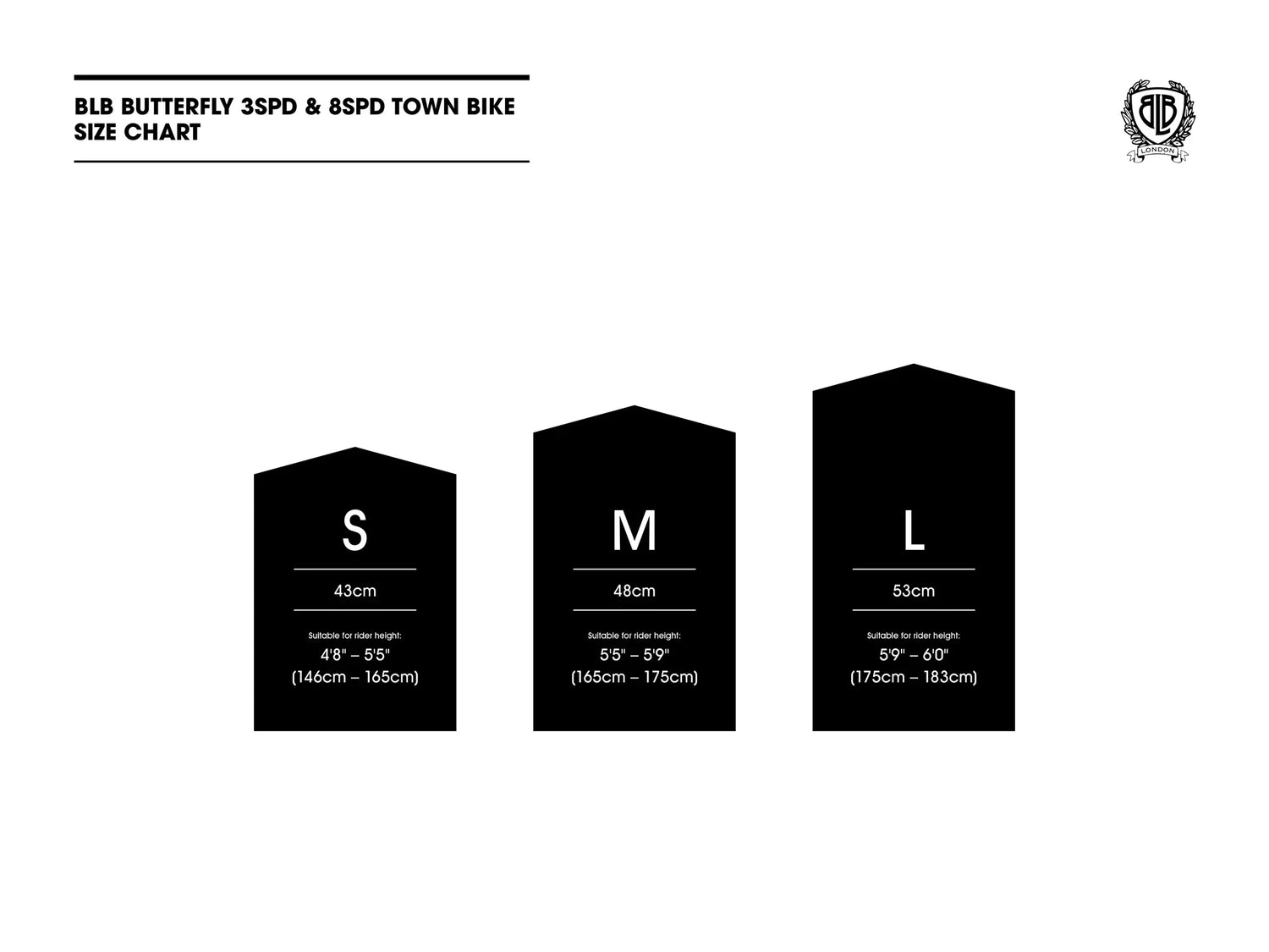 BLB Butterfly 8spd Town Bike - Black - 43cm is backordered and will ship as soon as it is back in stock.
