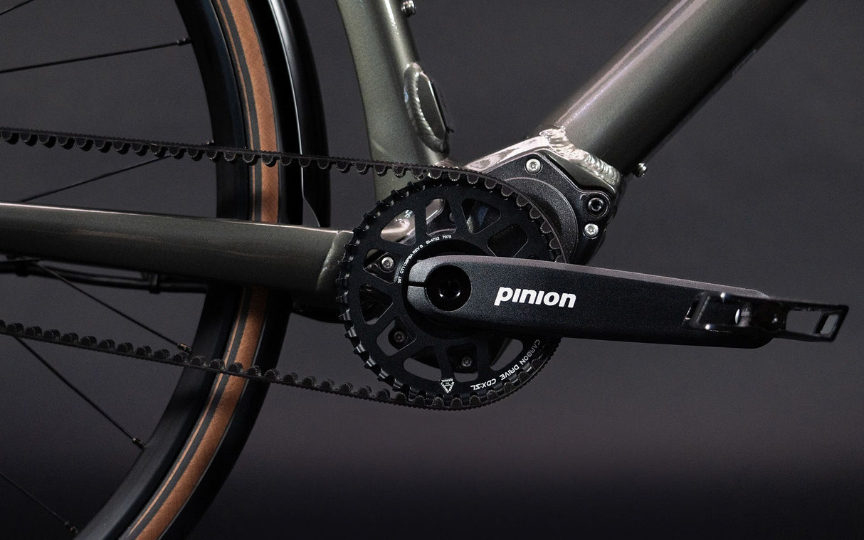 Frame Aluminium (AL6061-T6), triple butted aero tubing, forged bottom bracket shell, forged dropouts with slider belt tensioning system and Schindelhauer – belt port, integrated motor connection, integrated seat post clamp, smooth welded, internal cable routing