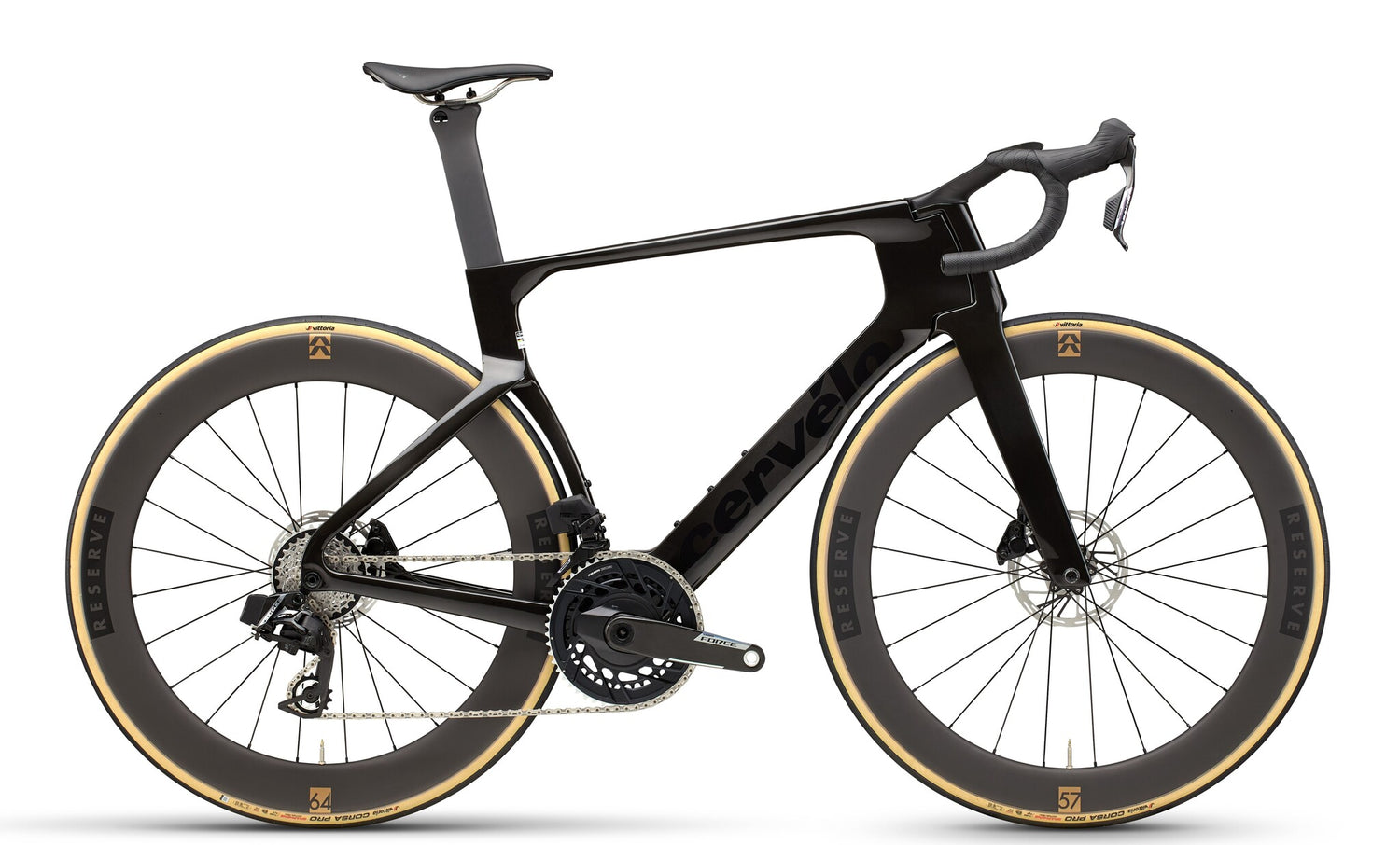 Cervélo and Reserve co-developed the new Reserve 57|64 Turbulent Aero wheels specifically for use in the S5 frame, completing the aerodynamic system.