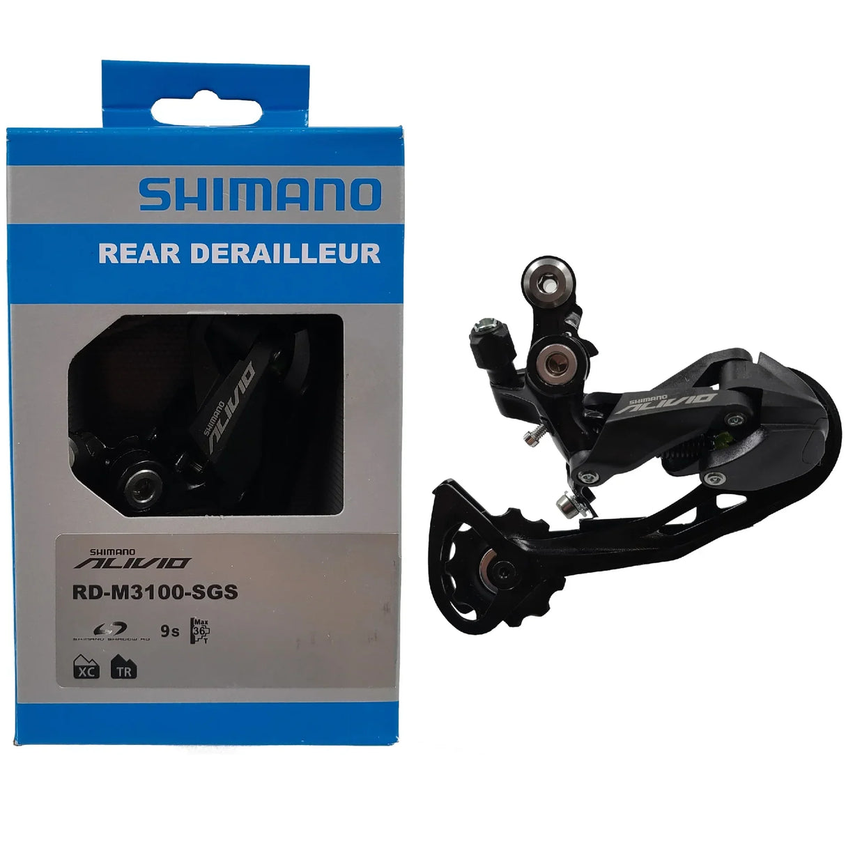 the SHIMANO ALIVIO M3100 rear derailleur delivers a low profile design that lets you ride aggressively with fewer interruptions thanks to its SHIMANO SHADOW design.Low-profile designTotal capacity: 45TMax. low sprocket: 36TAdjustment barrelHollow axle Cable adjuster Compatible chain: CN-HG53 9-speedDirect attachment (Conventional) Fluoric coated link bushings: 1Low sprocket_Max.: 36TLow sprocket_Min.: 32TMax. front difference: 22TSunken type pulley bolt Pulley_Teeth: 11TPulley cage: SGSRear speeds: 9SHADOW RD Top sprocket_Max.: 12TTop sprocket_Min.: 11TTotal capacity: 45T
