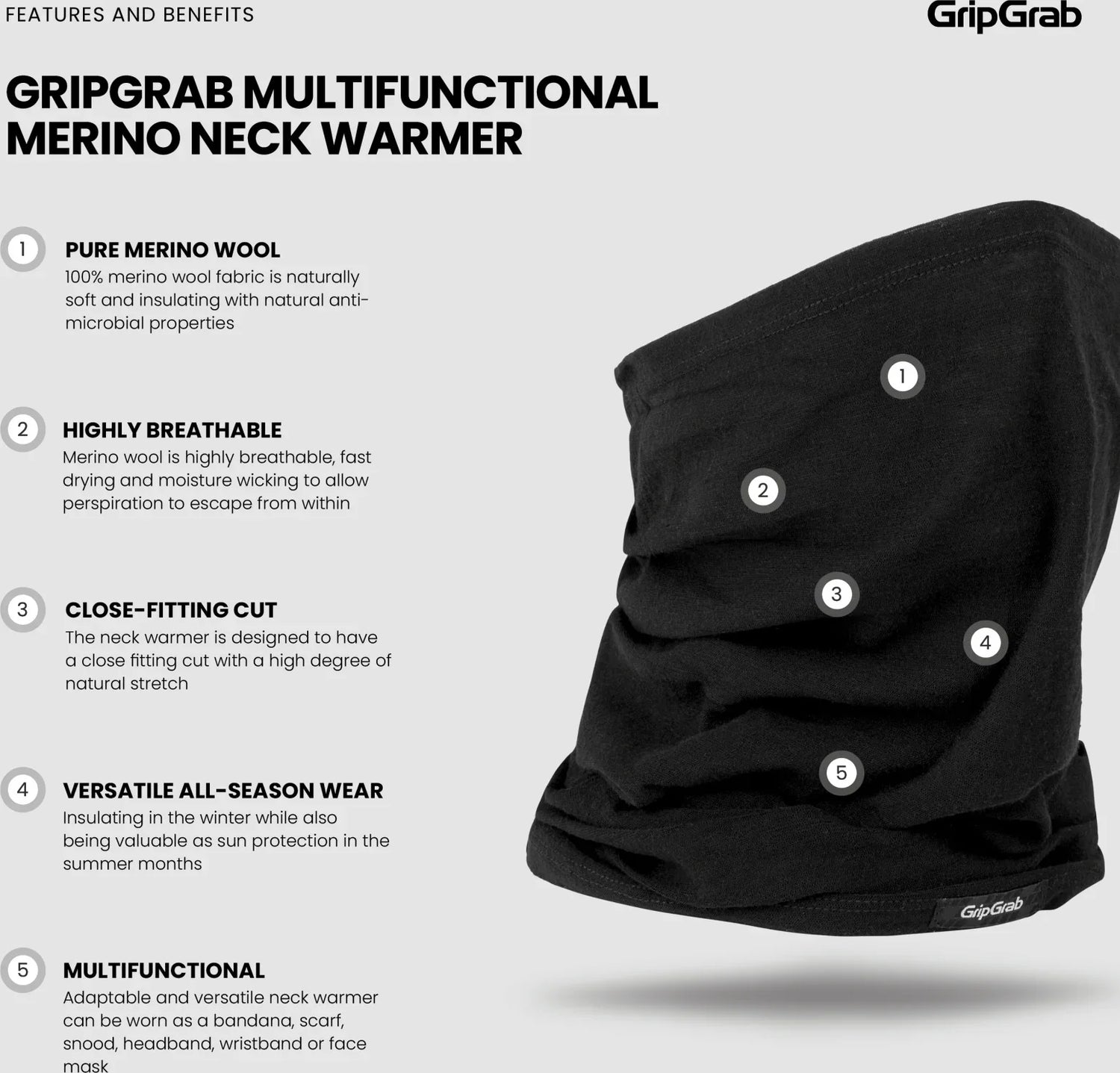 GripGrab Multifunctional Merino Neck Warmer - Black / OSFA is backordered and will ship as soon as it is back in stock.