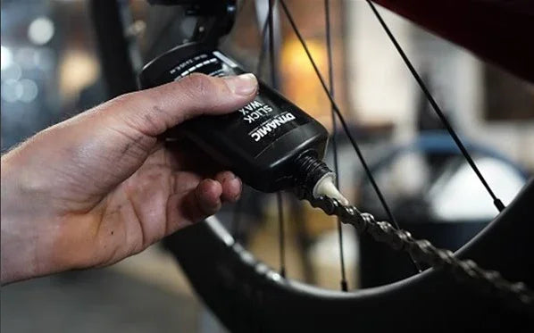 Run the chain through a cloth to wipe off any dirt or excess wax, you can also use a brush for your cassette or derailleur wheels, for example. Then apply a drop of Slick Wax to the inside and outside of each chain link. For best results, we recommend letting the wax cure for 2-3 hours before riding.