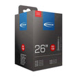 Schwalbe Inner Tube Wide Freeride 26 Inch French - SV13F/54-559, 57-559, 60-559, 62-559, 65-559, 70-559, 75-559. Schwalbe inner tubes are reliable. Bicycle retailers value them for their high level of reliability. Each tire is inflated at the factory and tested for air tightness for 24 hours. The tire holds air pressure longer. In production, Schwalbe requires a very high butyl content and very high purity of the material. This allows the Schwalbe inner tube to hold air pressure significantly longer than other inner tubes. It is a group-tube system: A Schwalbe inner tube is extremely elastic and fits multiple tire sizes. This is why they are called group-tubes. For example, the inner tube with number 19A fits tires from 27.5 to 29 inches and widths from 40 to 62mm. Finally, the tire is 100% recyclable. Freeride version: Large volume, low weight.