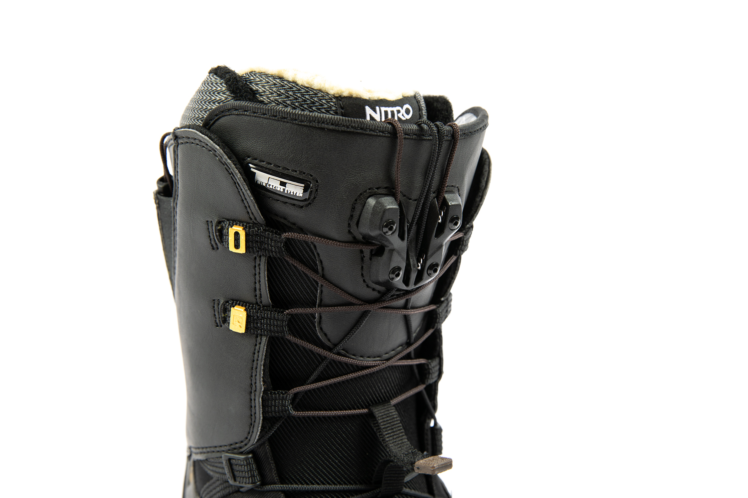 Nitro ILS oderes sistēma ir aprīkota ar auklas siksnu, kas tieši savienota ar zābaka apvalku, stingri nostiprinot to un nodrošinot precīzu piegulumu.