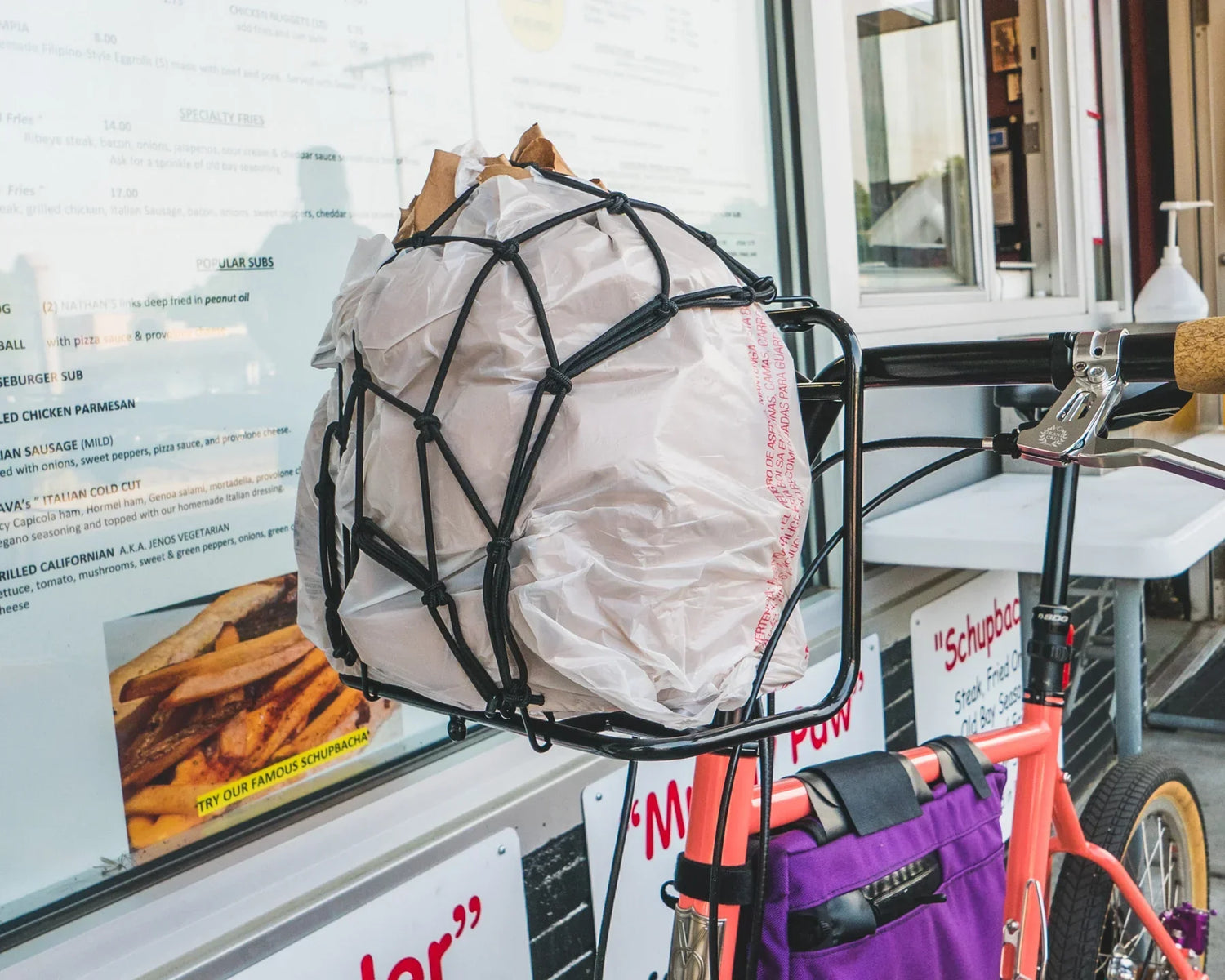 Het Utility Bar and Rack-systeem is misschien wel VO's beste antwoord op de vraag: "Hoe kan ik een bagagedrager op mijn fiets monteren?" Maak simpelweg je rugzak, favoriete 12-pack drank of fietstas vast aan je bagagedrager en trek hem vast. Je hebt geen vorken nodig die speciaal voor bagagedragers zijn gemaakt, p-clamps of iets dergelijks. Als je een stuurpenklem van 31,8 mm hebt, werken deze ook!