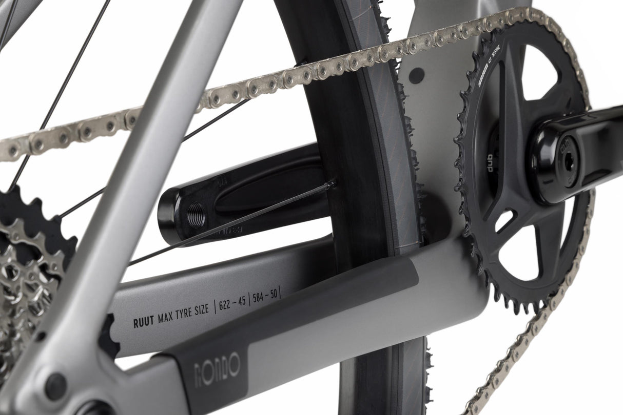 De RUUT CF1 is uitgerust met de beproefde draadloze SRAM Rival AXS groepset met ETAP shifters en een ergonomisch Selle Italia Novus zadel dat op een verlengde carbon zadelpen rust voor extra demping. Het Spank Flare Vibrocore stuur is een ander onderdeel dat wortels en geulen ontziet en het algehele vergevingsgezinde gevoel van de fiets complementeert.