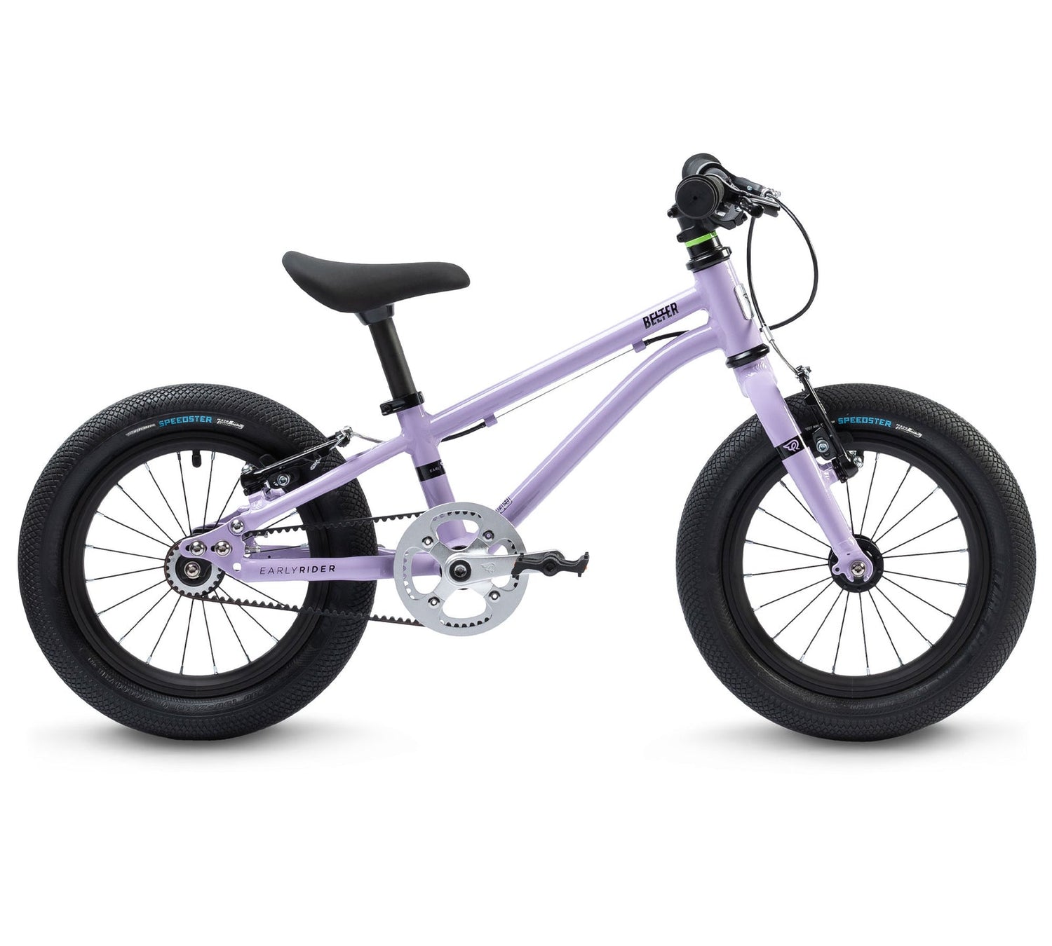 Meet the ultimate 14” kids’ first bike – super lightweight with a genius carbon belt drive, perfect for adventures on tarmac, gravel, grass and dirt. To help kids ages 3-5 years master pedals faster.