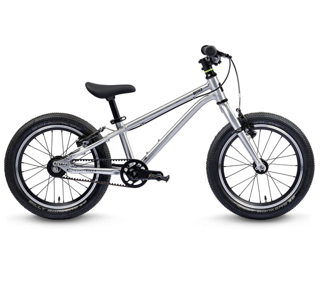 The Belter 16 Auto features a lightweight aluminum frame with updated geometry for greater stability and agile handling. The low-maintenance 8mm belt drivetrain pairs with a Sturmey Archer 2-speed automatic rear hub, delivering smooth, gear-free shifting that adapts to the rider's pace. Sliding dropouts, sealed bearing 14" wheels, and Schwalbe Billy Bonkers 2.0" tires ensure a durable, confident ride. Reduced-diameter grips and kid-optimized gearing make this the ideal next step for young urban riders.
