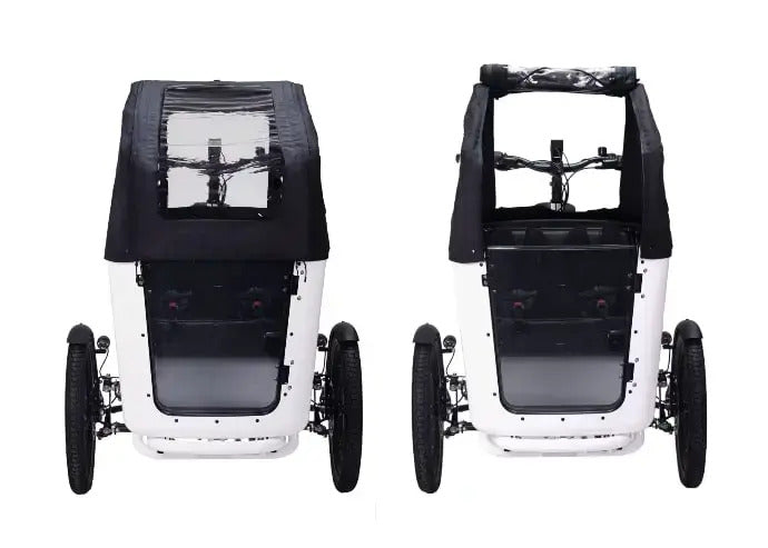 This unique cover is specially designed to offer you a panoramic view of the sky above, so you can see all around from the box of this beautiful electric cargo bike. The cover is made of waterproof and durable material that is easy to maintain and can be wiped clean with a damp cloth.