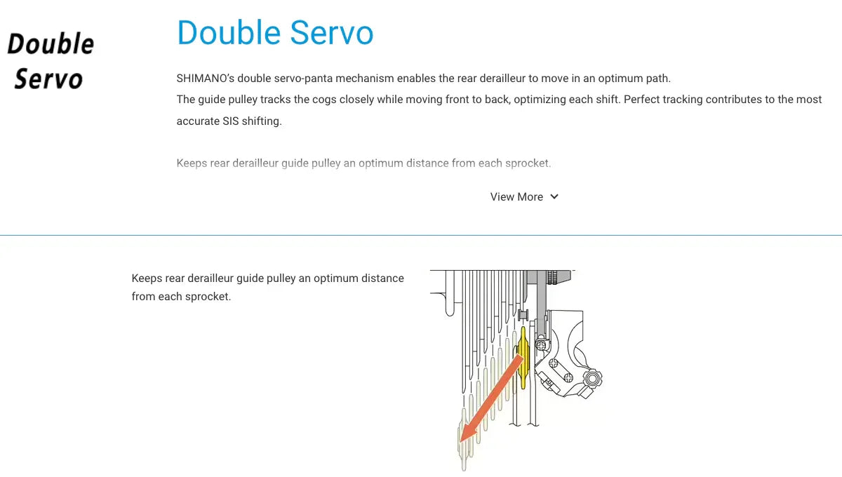 Dubbele Servo achterderailleur met soepele, nauwkeurige schakelprestaties en een groot schakelbereik.