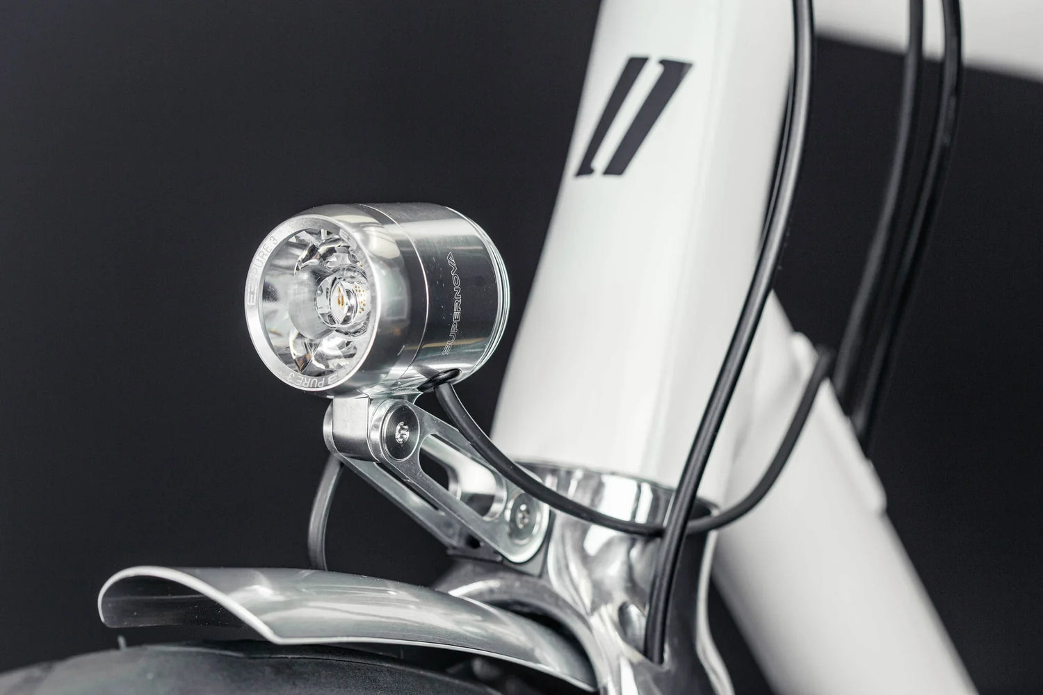 In samenwerking met Tubus hebben we de Fly bagagedrager zo aangepast dat hij perfect op deze fiets past. We hebben het Supernova E3 achterlicht in het design geïntegreerd en de kabelgoot een elegante afwerking gegeven. De drager is gemaakt van roestvrij staal en is zowel licht als robuust genoeg om tot 18 kg te dragen. De Fly is bovendien 100% compatibel met Ortlieb-producten.