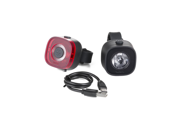 Montage zonder gereedschap. De lampen zijn oplaadbaar via USB en hebben een gemakkelijk afleesbare batterijstatusweergave.