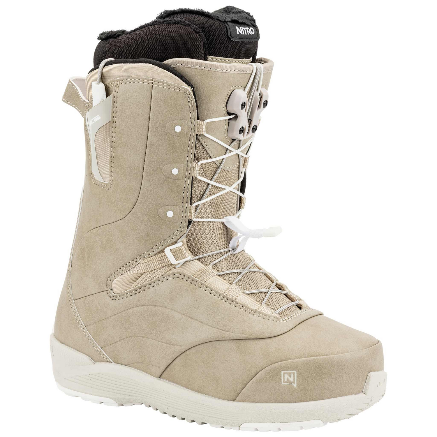 The Nitro Crown TLS is a women's snowboard boot designed for resort riders looking for a balance of comfort, support, and ease of use. These boots feature a soft-medium flex and a special lacing system that provides a good fit and consistent performance throughout the day.